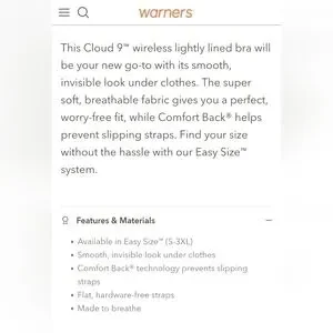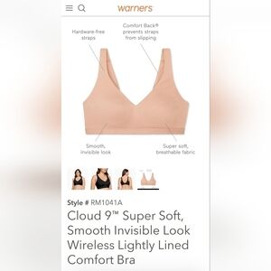Warner's Wireless Lightly Lined Comfort Bra Size Large