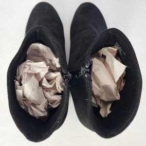 Step out in style with these chic black suede ankle boots. Perfect for any occasion, these boots offer both comfort and elegance.