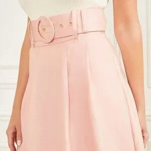 A posh linen-blend skirt for those grandiose plans. Features pockets, front pleats, pressed seams and matching wide belt. Eco-responsible fiber production.