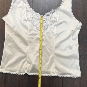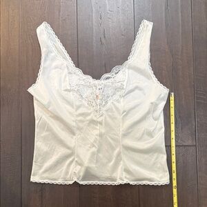 Elegant white camisole with lace trim. Perfect for layering or wearing alone. No stains or tears found.