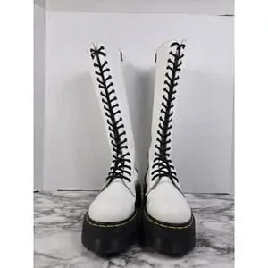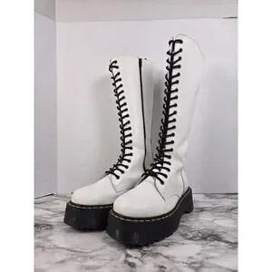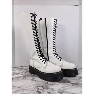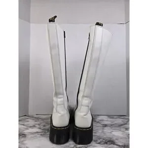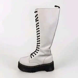 Dr Martens Britain - White 20 Hole Knee High Platform Boots - Womens 8