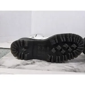 The Dr. Martens Britain White 20 Hole Knee High Platform Boots are a stylish and edgy choice for women looking to make a statement with their footwear. Made from leather with a block heel and rubber outsole, these boots offer both durability and comfort. The knee-high shaft and platform style provide added height and a bold look, perfect for adding a touch of punky flair to any outfit. With a UK size 6 and US/AU size 8, these boots are sure to be a standout addition to any wardrobe.