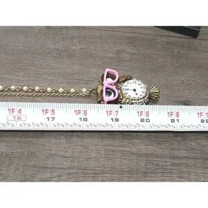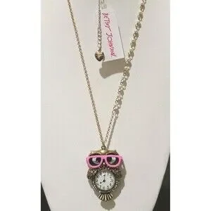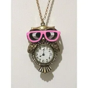 Betsey Johnson Back To Cool Owl Pink Glasses Faux Clock Pendant Necklace New