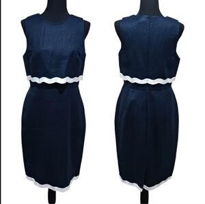 J. Crew Going Places Linen Scalloped Dress, Size 8. Colors: Blue & white. 100% linen. Dry Clean.