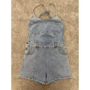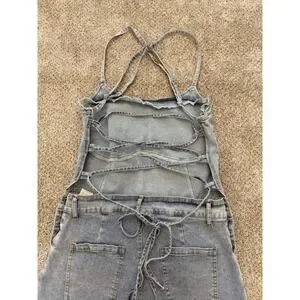 SHEIN Denim Romper Lace Up Back Large