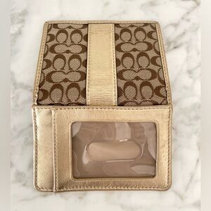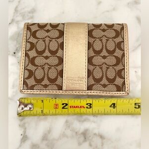 Vintage Coach Signature Card Case Wallet Khaki/Metallic Brown