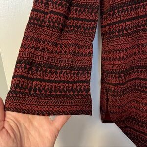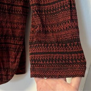 Stylish Marimekko tunic with intricate patterns. Features a rich red and black color scheme. Perfect for casual wear.