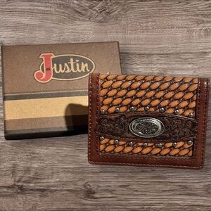 Justin Men's Brown Basket Weave Tooling & Concho Trifold Wallet
