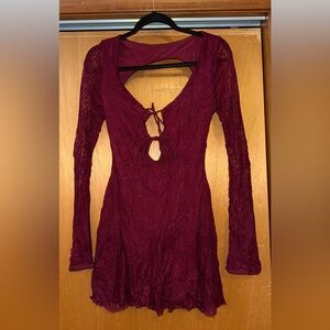 Cute lace burgundy dress perfect for going out or a date night. Never worn!! Size medium