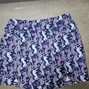 Lilly Pulitzer Luxletic Sabbia UPF 50+ skort in the Oyster Bay Navy On The Catwalk print.