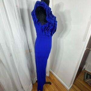 Step out in style with this elegant blue ruffled jumpsuit. Perfect for any occasion, this piece offers both comfort and sophistication.