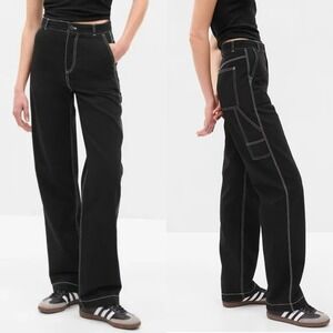 Gap Womens Carpenter Pants Size 8 Black White Contrast Stitch High Rise Cotton