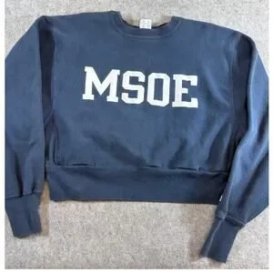 VINTAGE Champion Reverse Weave Womens Sweatshirt Blue MSOE Cropped Crewneck XL