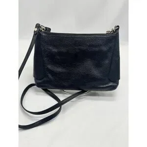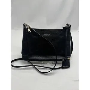 Henri Bendel Crossbody Bag Womens Small Black Pebbled Leather Zip Shoulder Purse