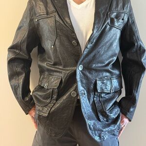 Black genuine leather blazer style jacket. Very unique.