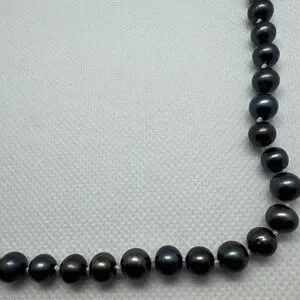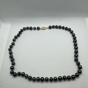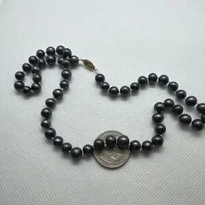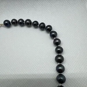 Vintage Tahitian Peacock Rainbow Black Pearl Necklace 14K Gold CLASP 18”