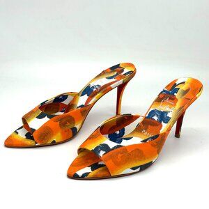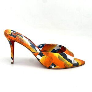 Christian Louboutin MISS Z MULE 80 Printed Toile Sandals Heels Shoes Magma