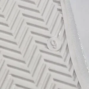 New with stickers, but with flaws. Has a stain on front left toe. Looks purplish, but not too noticable. White shoe polish can probably cover it. See pics.