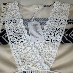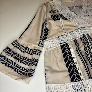NWT Boho Cream and Black Dress with Lace Details V-neck Long Bell Sleeve SzM