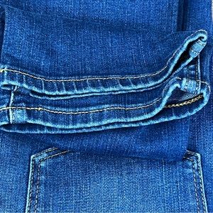 Features include 5 Pockets, Belt Loops, Cropped, Ankle, Button Fly, Blue Denim, Have Stretch