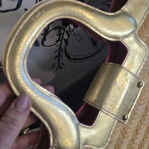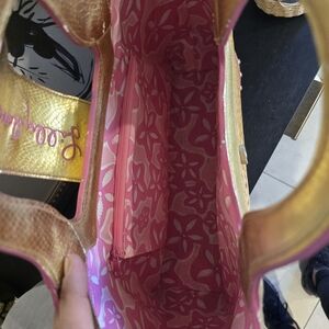 This bag is used; you can see all the signs of wear in the photos. The inside and bottom are like new. A few stones are missing from the starfish charm, but it's barely noticeable. It still has plenty of use left.