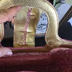 Lilly Pulitzer Straw Tote Bag With Gold Trim And Starfish Embellishment