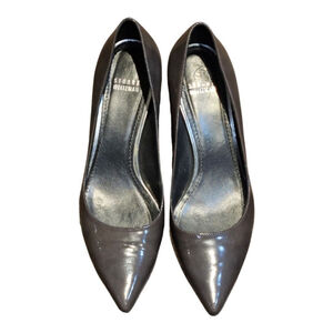 Stuart Weitzman Ladies Gray Patent Leather Block Heels Pumps Size 9 1/2