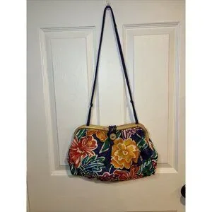 Vintage Liz Claiborne floral purse. Guc, needs a cleaning, has some marks/stains. Please use photos are guide to condition and size.