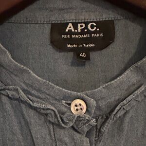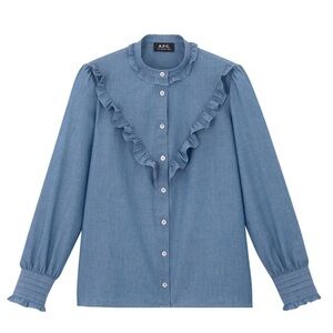 A.P.C Women's Blue Chambray Blouse Ruffle Button-Up Top 100% cotton
