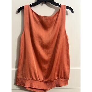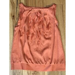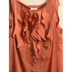 Ann Taylor LOFT Blouse Womens Large Orange Ruffle Scoop Neck Sleeveless Top