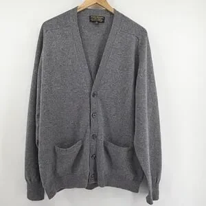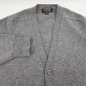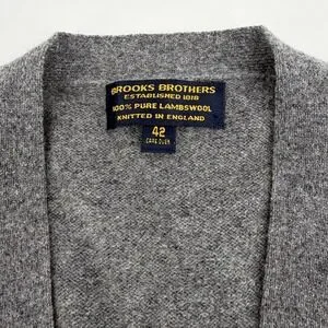 Brooks Brothers Mens 42 Lambswool Cardigan Sweater Grey Knitted in England VNeck