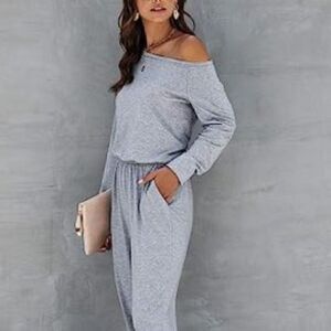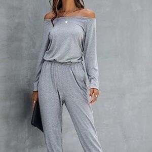 Women's Off Shoulder Jumpsuit Gray Size Small