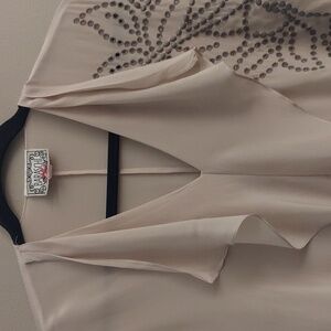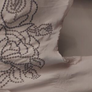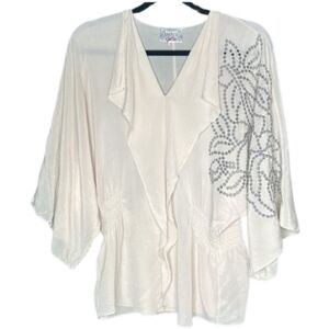 BARASCHI Silk Cream And Gray Dolman Sleeve Embroidered Eyelet Top in excellent condition