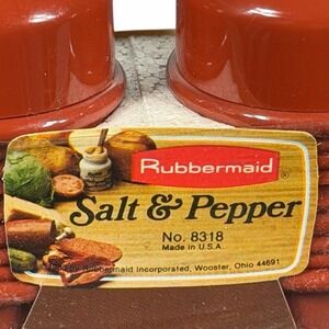 This product is a set of two vintage Rubbermaid plastic salt and pepper shakers from the 1980s, sealed and brand new. The shakers are made of durable plastic material and feature a universal food compatibility, making them perfect for all occasions. With a classic 1980s style and original design, these shakers are easy to clean and weigh 4 oz each. Made in the United States, this collectible kitchen tool is a practical and stylish addition to any kitchen or dining table.