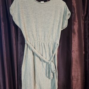 Caution to the Wind cap sleeve plaid tie dress in a light gray and white waffle texture