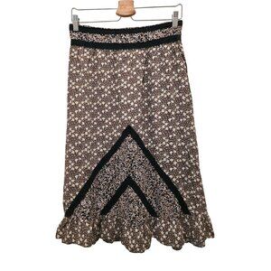 Free People Boho Brown Floral Midi Rayon Skirt With Geometric Accent Sz S