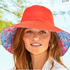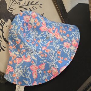 Brighten your look with this Lilly Pulitzer hat. Features a lively floral pattern in blue and pink. Perfect for sunny outings.