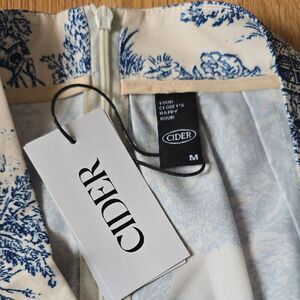 Chic skirt with a blue and white toile print. Perfect for a stylish look.