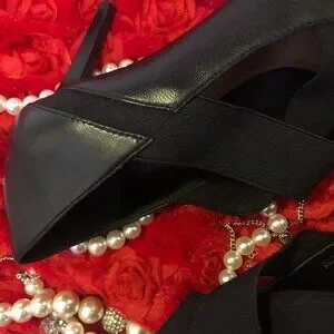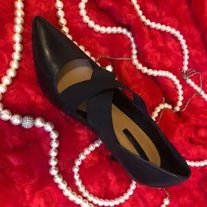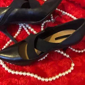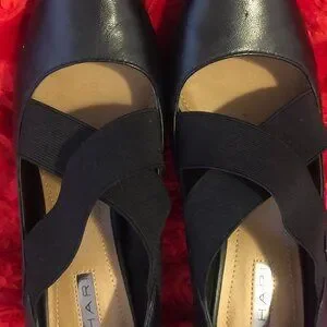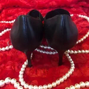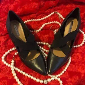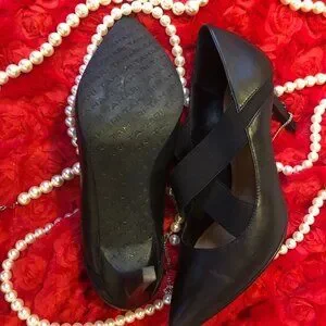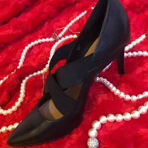 Leather upper. Slip-on with elastic panels (great design as they keep the foot in place in the shoe). Pointed-toe. Synthetic lining. Lightly padded foot bed. Man-made outsole. Wrapped heel. Heel Height: 3 1/2 inch.