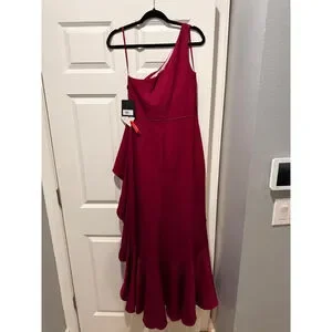 Women's Mac Duggal One Shoulder Ruffle High-Low Dress in Burgundy, Size 4