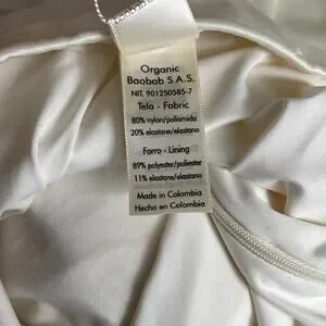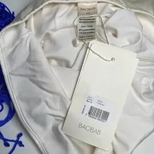 Please be aware there is a very faint minor mark at front top of one side of bust on the white liner and on back top side, both pictured above and not noticeable when wearing especially as the blue crochet piece goes over the white liner. Measurements below: