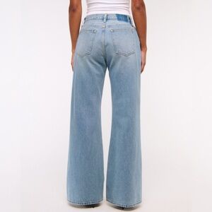 curve love baggy bootcut jeans in a medium wash with a clean hem. this fit features a 9.5" mid rise, is slouchy at the waist and hips, and eases through the thigh into a baggy bootcut leg shape. curve love features additional room through the hip and thigh for curve-hugging comfort. this jean is made from heavyweight rigid denim fabric, a super soft authentic cotton fabric with no stretch. size 26 (2).