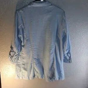 Light Blue H Halston Linen Blend Blazer with Ruffled Sleeves M