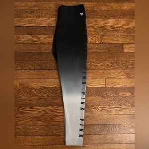 Super cute PINK by Victoria’s Secret ombré leggings featuring a black-to-gray fade with bold “PINK” lettering down the leg. Perfect for workouts, lounging, or athleisure looks.