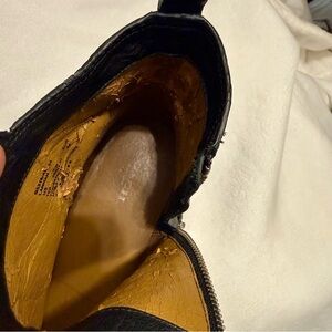 Functional inner side zipper for easy on-and-off access. The exterior of these shoes are outstanding with no flaws. The interior is a bit worn, however, but no one will see that part😊