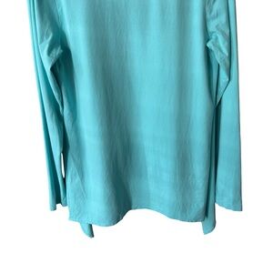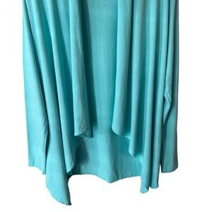 Excellent condition Coolibar open-front cardigan in a vibrant turquoise blue. Designed with UPF 50+ sun protection, this lightweight layering piece offers excellent UV coverage while staying breathable and comfortable. Features a relaxed drape, long sleeves, and an open waterfall front that’s easy to throw on over tanks, tees, or swimwear.