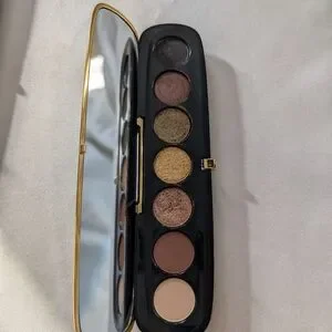 Elegant Marc Jacobs eyeshadow palette. Sleek black and gold design. Perfect for stylish makeup looks.