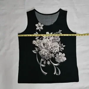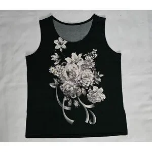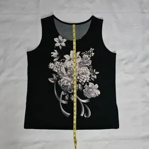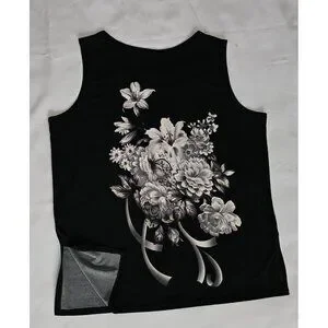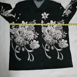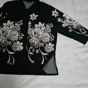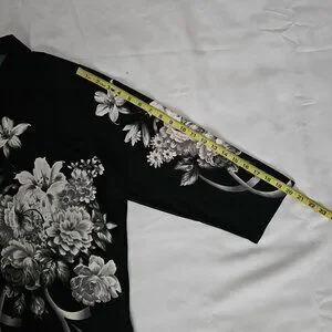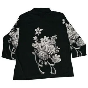 ModeLia Women's Floral Print Kimono W/ Inner Sleeveless Blouse Black Size Medium