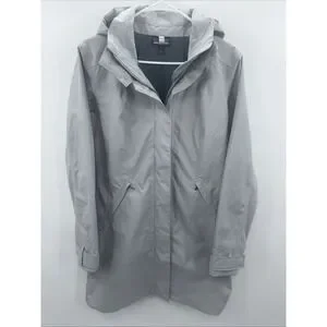 The Patagonia Vosque Shell Jacket in Grey is a waterproof and hooded zip-up coat designed for women in size small. Made with nylon outer shell material, this solid grey jacket features long sleeves and a full zip closure for easy wear. It is suitable for travel and casual occasions, with added features like zipped pockets and a shell theme. Machine washable for convenient care, this basic jacket from Patagonia is a stylish and functional outerwear option for any weather.