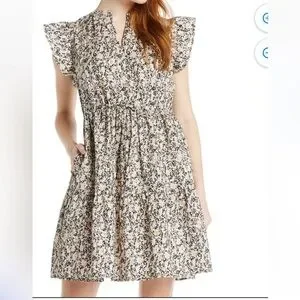 Time and Tru XXL (20) Ditsy Daisy Floral Mini Dress with Flutter Sleeves